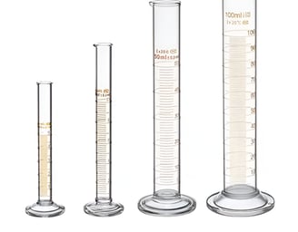Graduated cylinders are used for measuring the volume of liquids. They are tall, cylindrical containers with markings along the side, indicating volume in milliliters (mL). While less precise than volumetric pipettes or burettes, they offer a convenient way to measure liquid volumes for many laboratory procedures. They are available in various sizes and are typically made of glass or plastic. Accuracy is dependent on reading the meniscus at eye level.