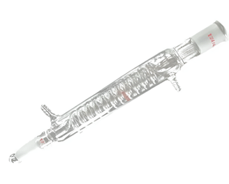 Laboratory condensers are essential pieces of glassware used for cooling hot vapors or liquids. They facilitate the condensation process, converting gases back into liquids, often in distillation or reflux setups. Typically, they consist of an inner tube through which the vapor passes, surrounded by an outer jacket through which cooling water circulates. This design efficiently removes heat, allowing for controlled condensation and collection of the desired liquid. Common types include Liebig, Graham, and All in condensers, each suited for specific applications.